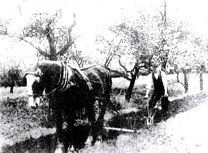 The real work at Crawkham was accomplished by an inseparable duo, Joe and Polly. Joe Rhodes could and did do everything on the farm and Polly was a shire horse of gigantic size. On Polly's vast back my little legs stuck out horizontally. But what fun it was to go with Joe to take Polly to be shod in Sandiacre. With so little traffic, we three could walk in perfect safety down to Derby Road, over the railway and the Erewash and finally the canal bridge and crossroads would take us to the forge in Town Street. On the return Joe would lift me on to Polly's back.