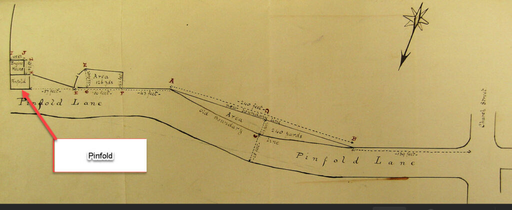 The precise location of the pinfold has long been a matter of uncertainty. It was generally assumed to have stood on the site later occupied by the car park of the Nags Head and Plough, enclosed by a substantial stone wall backing onto Pinfold Lane. However, this assumption is at odds with frequent contemporary references to the pinfold’s dilapidated condition, which suggest a less robust structure.